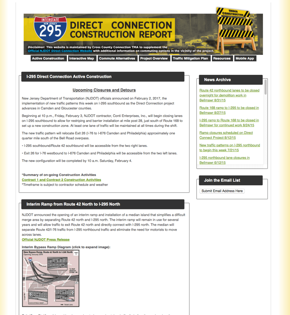 Website Design Web Design Website design to bring information to commuters about the construction happening on Rt.2952013http://www.njdirectconnection.com/ Cross Country Connection website http://www.driveless.com/ Related